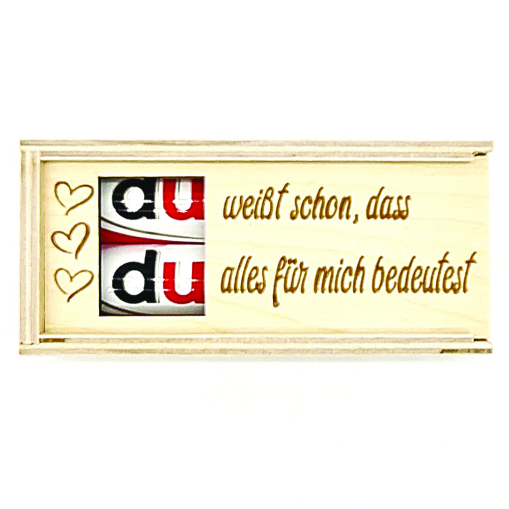 Die DU~Box ist eine Holzbox mit Schiebedeckel. Darin enthalten sind 2 Duplo.
