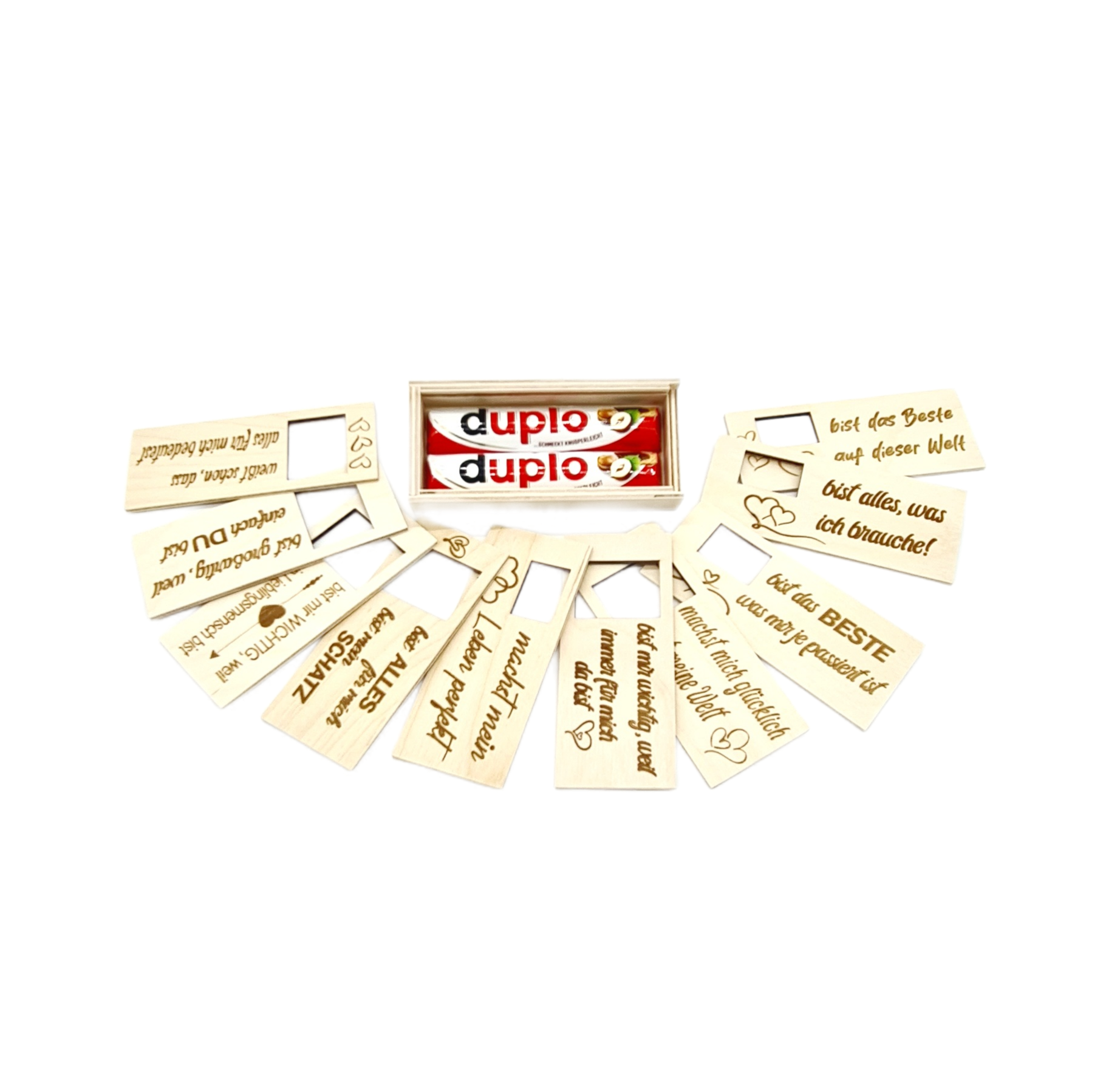 Die DU~Box ist eine Holzbox mit Schiebedeckel. Darin enthalten sind 2 Duplo.