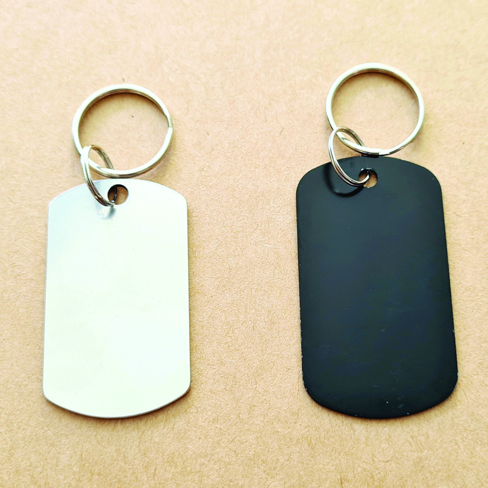 Größe: ca. 5×3 cm, ca. 1mm dick, mit Schlüsselring